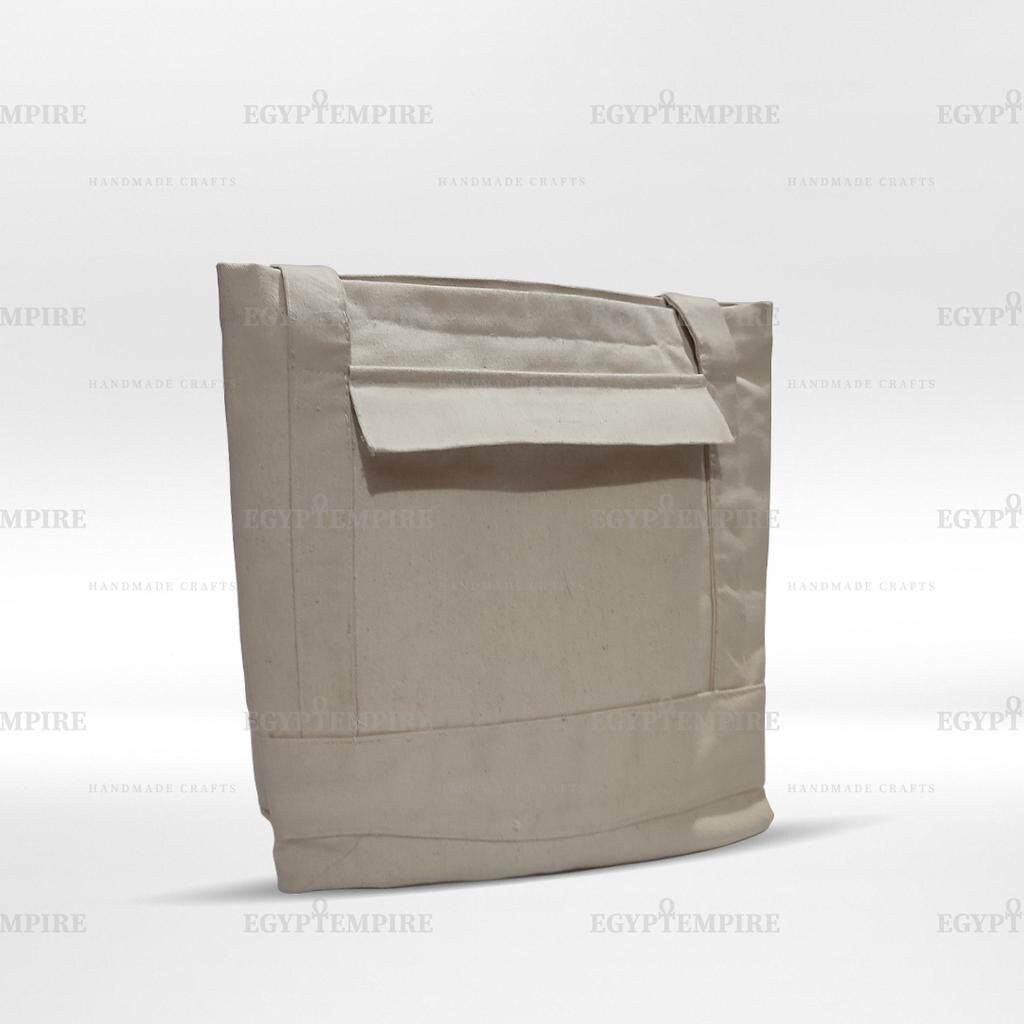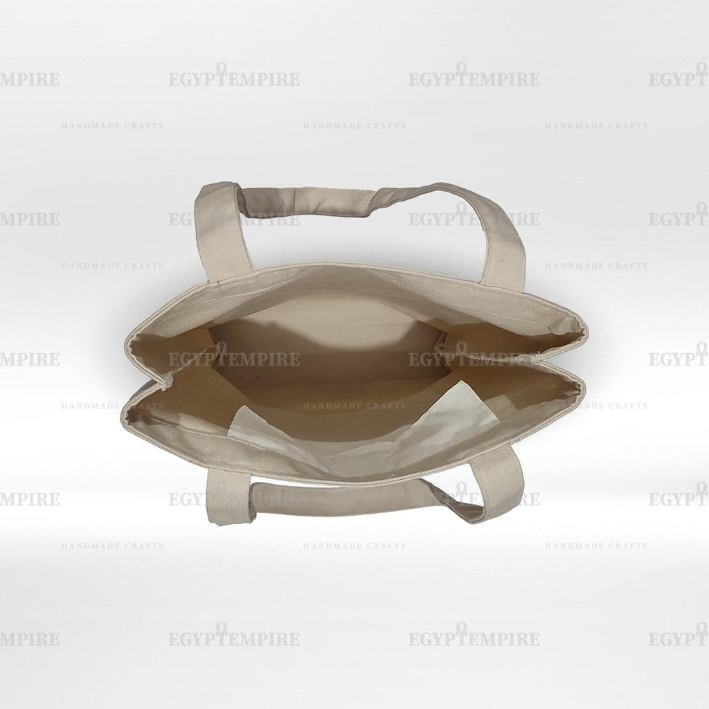 Canvas Tote Bag, 100% Egyptian cotton women Handbag, outside -pocket with hand painted Egyptian Goddess ISIS.